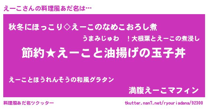 | 意味不明あだ名 | 『ペロリンえーこ』『永久保存えーこ』 |