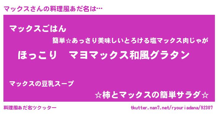 | ヘコむあだ名 | 『マックス(笑)』『マッっ子』 |
