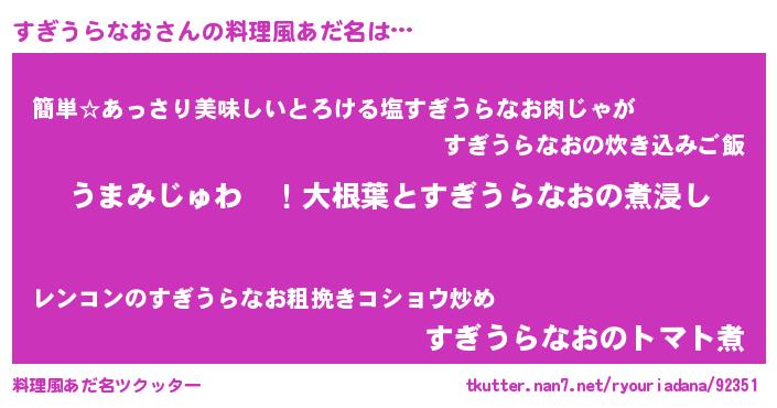 | ファンタジー風あだ名 | 『エターナルスギウラナオー』 |