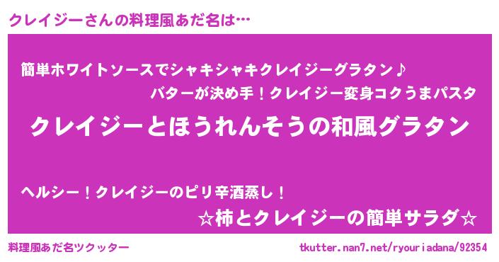 | ヘコむあだ名 | 『クレを』『クレイジー(遠い目)』 |