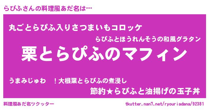 | 意味不明あだ名 | 『住所不定無職らぴふ(13歳)』 |