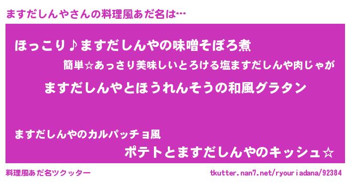 | 女子向けラノベタイトル風あだ名 | 『ますだしんやの玉の輿計画!』 |