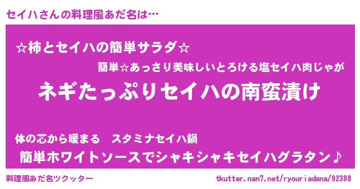 | ヒーロー風カッコイイあだ名 | 『スーパーセイハ』『銀牙騎士セイ』 |