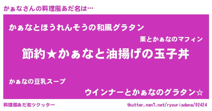 | 男性向けラノベタイトル風あだ名 | 『かぁなの憂鬱』『はたらくかぁなさま!』 |