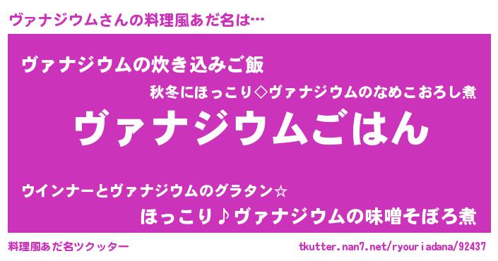 | 意味不明あだ名 | 『しいたけ科ヴァナジウム属』 |