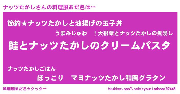| 男性向けラノベタイトル風あだ名 | 『ノーゲーム・ノーナッツタカシ』 |