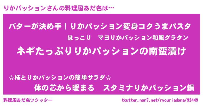 | 胡散臭い通販商品みたいなあだ名 | 『億万長者になれる水晶球…その名も「りかパッション」』 |