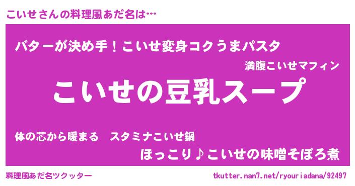 | 女子向けラノベタイトル風あだ名 | 『こいせは平凡を望む』『こいせ恋絵巻』 |