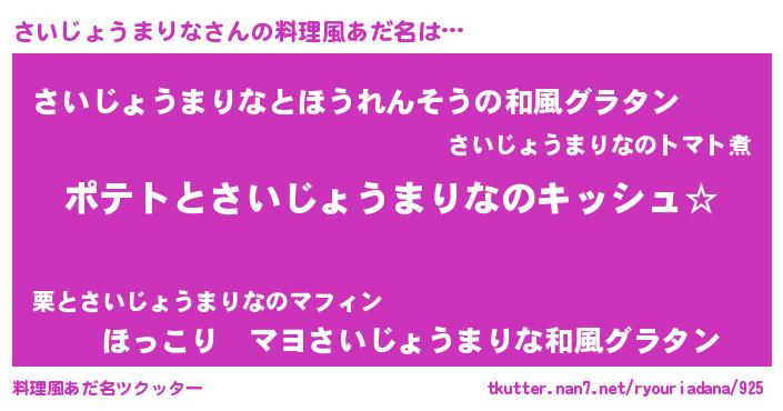 | 意味不明あだ名 | 『とにかく怪しいさいじょうまりな』 |