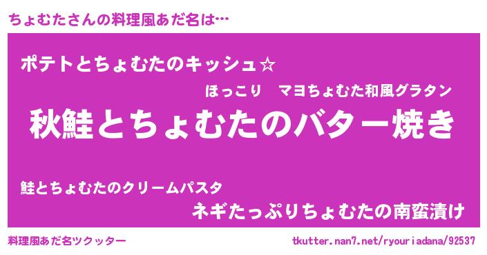 | 男性向けラノベタイトル風あだ名 | 『ちょむたという概念が存在しない退屈な世界 』 |