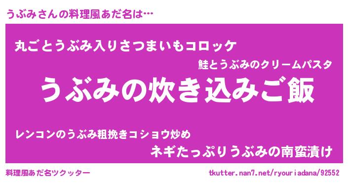 | 意味不明あだ名 | 『住所不定無職うぶみ(43歳)』『自称うぶみ』 |