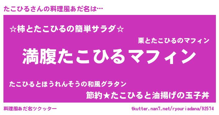 | 男性向けラノベタイトル風あだ名 | 『たこひるという概念が存在しない退屈な世界 』 |