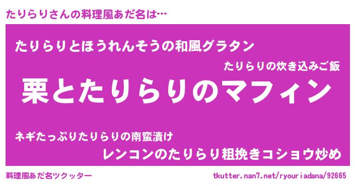 | ヒーロー風カッコイイあだ名 | 『ウルトラ戦士タリラリ』『幻影騎士タリ』 |