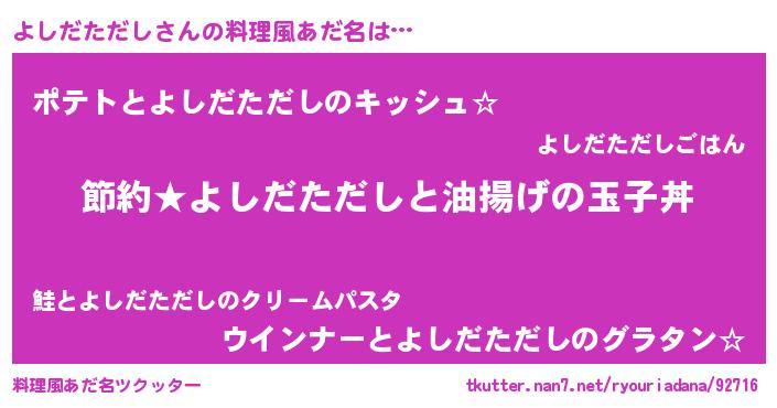 | ヒーロー風カッコイイあだ名 | 『スーパーヨシダタダシ』『銀牙騎士ヨシ』 |