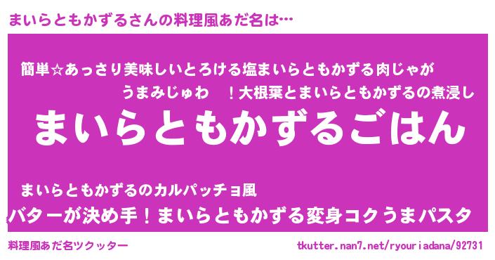 | 意味不明あだ名 | 『たけのこ科まいらともかずる属』 |