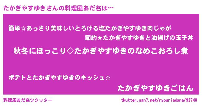 | ヘコむあだ名 | 『たかぎやすゆき(笑)』『たかふぇ~』 |