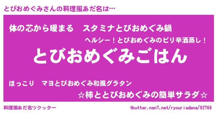| ヘコむあだ名 | 『豆乳』『とびぷりん』『とびにゅー』 |