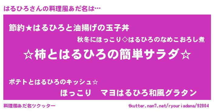 | 男性向けラノベタイトル風あだ名 | 『緋弾のハルヒロ』『はるひろの憂鬱』 |
