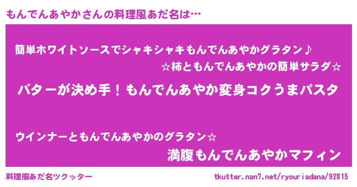 | 女子向けラノベタイトル風あだ名 | 『もんでんあやか恋絵巻』 |