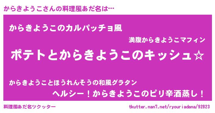 | ヘコむあだ名 | 『からぷりん』『からきようこ(小並感)』 |
