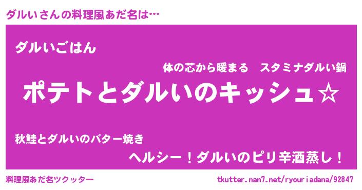 | 意味不明あだ名 | 『とにかく怪しいダルい』『自称ダルい』 |