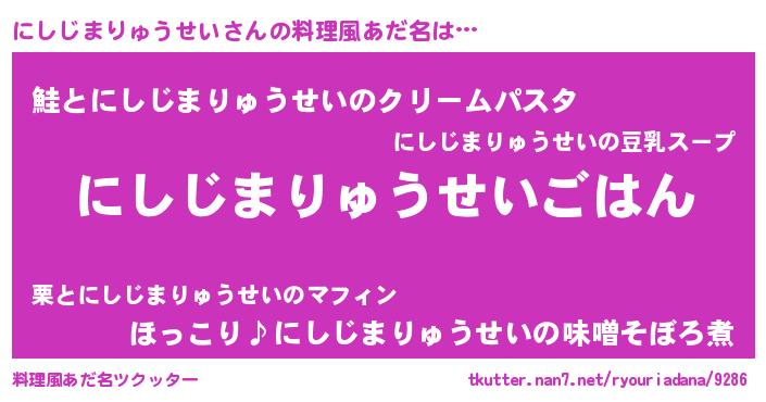 | 男性向けラノベタイトル風あだ名 | 『転生したらにしじまりゅうせいだった件』 |