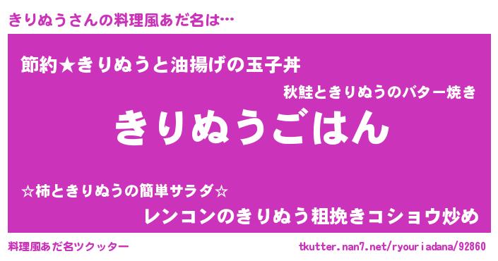 | 男性向けラノベタイトル風あだ名 | 『キリヌウスレイヤー』『きりぬうの憂鬱』 |