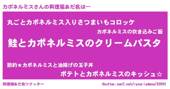 | 女子向けラノベタイトル風あだ名 | 『死神カポネルミスの再婚』 |