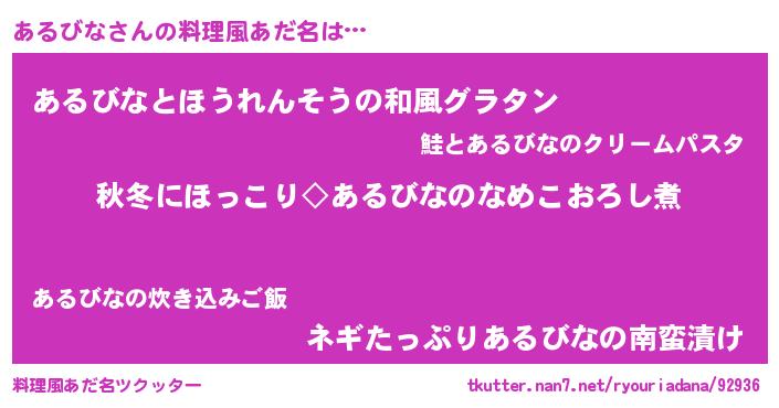 | ヘコむあだ名 | 『あるにゅー』『あるびな(爆)』 |