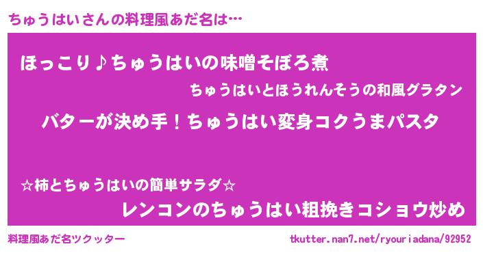 | ヘコむあだ名 | 『ちゅもー』『つくし』『ちゅっぺ』 |