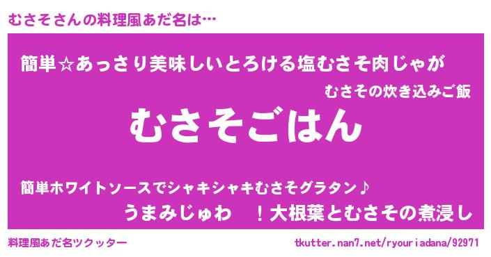 | 意味不明あだ名 | 『たけのこ科むさそ属』『永久保存むさそ』 |