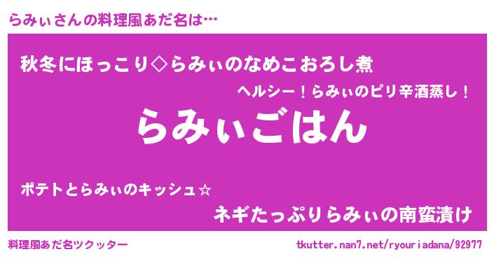 | 恥ずかしいあだ名 | 『プリティーらみぃ』『ラミィデラックス』 |