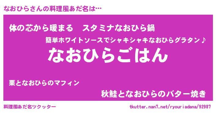 | 男性向けラノベタイトル風あだ名 | 『ナオヒラスレイヤー』 |