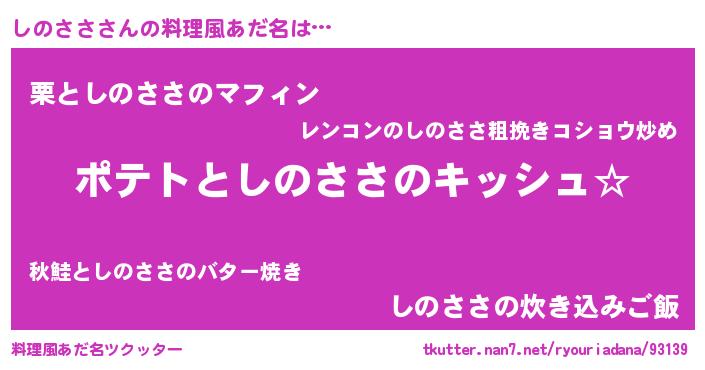 | 男性向けラノベタイトル風あだ名 | 『しのささの嫁は女の子じゃないと思った?』 |