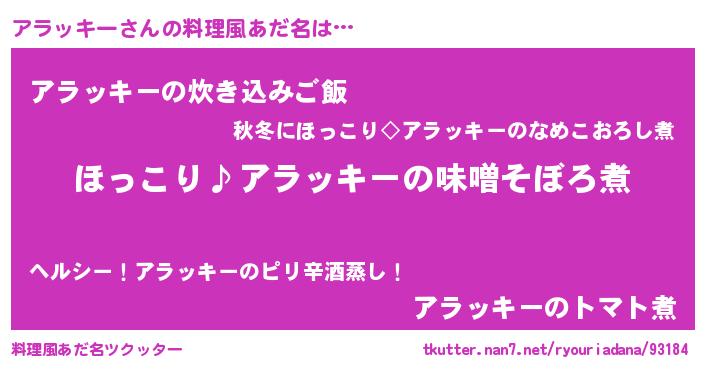 | ヘコむあだ名 | 『アラにゅー』『アラ太郎』『牛乳』 |