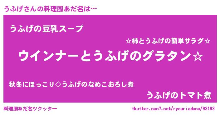 | ポケモン風あだ名 | 『ウフゲダネ』『ヒウフゲ』 |