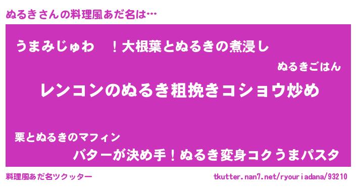 | 女子向けラノベタイトル風あだ名 | 『ぬるきなんてお断りですっ。』 |