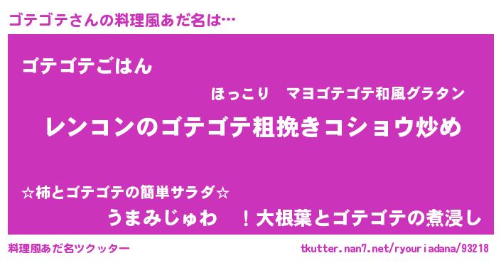 | ヘコむあだ名 | 『豆乳』『ゴテにゅー』『ゴテぷりん』 |