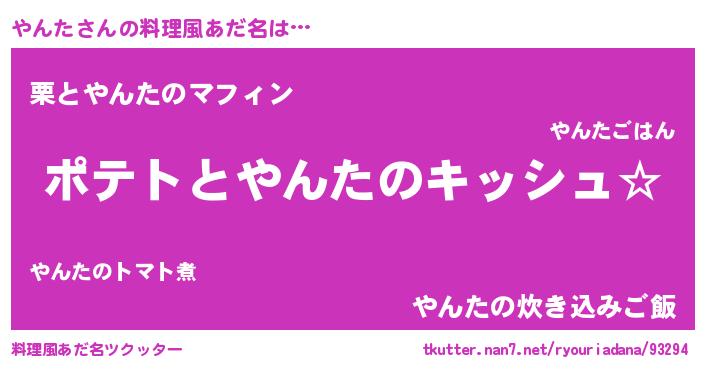 | 男性向けラノベタイトル風あだ名 | 『やんたの嫁は女の子じゃないと思った?』 |