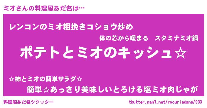 | ポケモン風あだ名 | 『ヒミオ』『ミオセウス』『ゼニミオ』 |