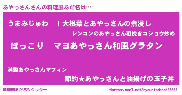 | 意味不明あだ名 | 『住所不定無職あやっさん(81歳)』 |