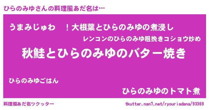 | 胡散臭い通販商品みたいなあだ名 | 『来世でも幸せになれる水素水…その名も「ひらのみゆ」』 |