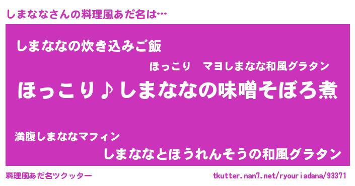 | ツイッター | しまななさんのツイッターID『kikurage_kun』 |