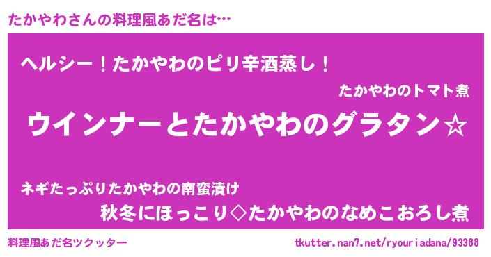 | ファンタジー風あだ名 | 『エターナルタカヤワー』『ゼタカトゥ』 |