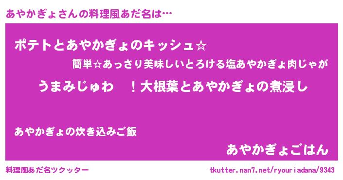 | ポケモン風あだ名 | 『アヤカダネ』『ヒアヤカギョ』 |