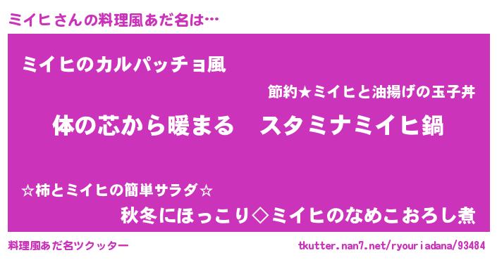 | 意味不明あだ名 | 『ミイヒフォーエバー』『ペロリンミイヒ』 |
