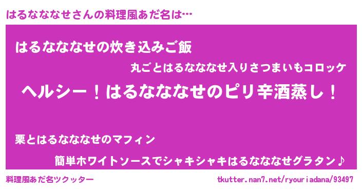 | 胡散臭い通販商品みたいなあだ名 | 『芸能人もオススメする高麗人参…その名も「はるなななせ」』 |