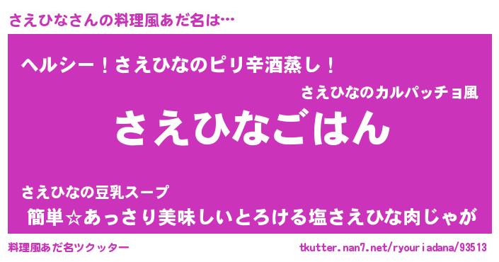 | ヘコむあだ名 | 『さえひな(遠い目)』『さえぷりん』 |