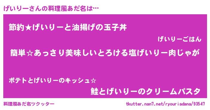 | ヘコむあだ名 | 『げいりー(笑)』『げいにゅー』 |