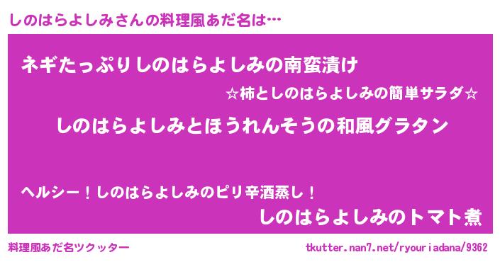 | 胡散臭い通販商品みたいなあだ名 | 『モテモテ間違いなしブレスレット…その名も「しのはらよしみ」』 |